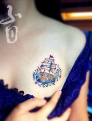 纹身520图库推荐一幅性感的胸部字母纹身图片