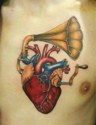 神兽纹身图片:胸部彩色神兽貔貅纹身图案