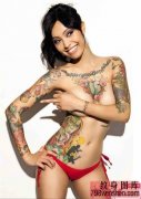 妖艳美女胸部金鱼与图腾纹身图案图片