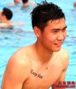 国足雷腾龙胸部英文纹身作品