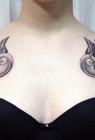 水彩画的蜂鸟盘与花朵胸部纹身图案
