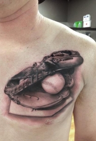 胸部黑灰人物肖像和红色的写实心脏纹身图案