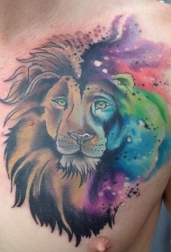 令人惊叹的耶稣肖像和狮子胸部纹身图案