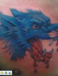 胸部霸气的滴血狼头纹身图案