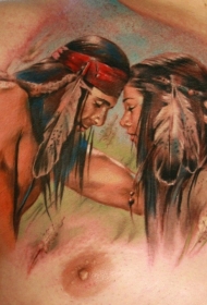 胸部写实风格浪漫的印度夫妇肖像纹身图案