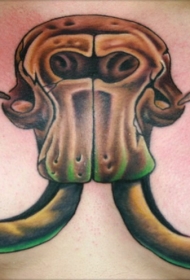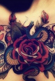 胸部好看的的彩色骷髅和玫瑰纹身图案