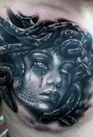 胸部有趣逼真的美杜莎肖像纹身图案
