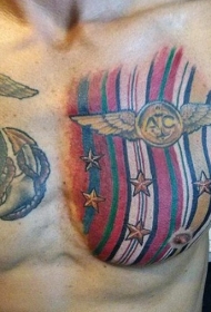 胸部军事主题和彩色星星条纹纹身图案