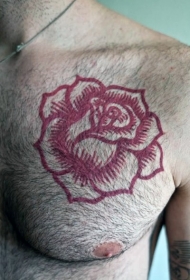 胸部奇妙的红色玫瑰花纹身图案