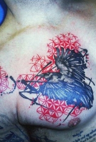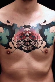 胸部水彩泼墨几何纹身图案