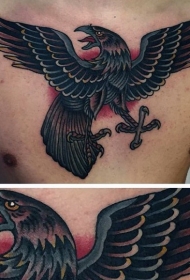 现代风格彩色乌鸦胸部纹身图案