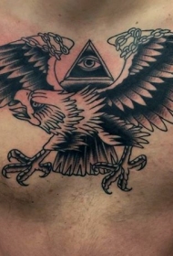 胸部神秘风格鹰和几何眼睛纹身图案
