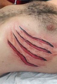 非常逼真的彩色爪印疤痕胸部纹身图案