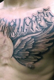 胸部神秘字母和翅膀纹身图案