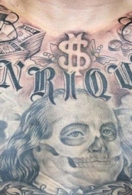 胸部墨西哥土著彩色骷髅国王和王后纹身图案