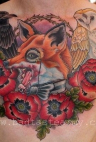 old school神秘的猫头鹰花朵眼睛纹身图案