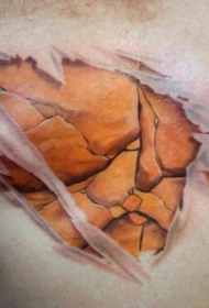 胸部彩色皮肤撕裂与岩石肌肉纹身图案