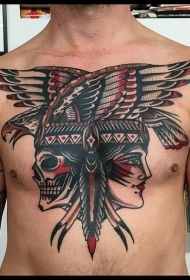 胸部old school斑斓的印度女人骷髅和鹰纹身图案