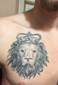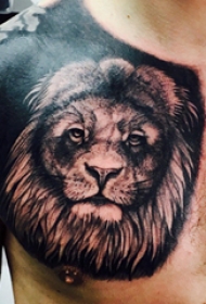 纹身胸部男 男生胸部黑灰的狮子头纹身图片