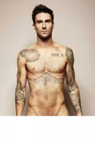 国际纹身明星 Adam Levine胸下黑色的老鹰纹身图片