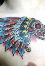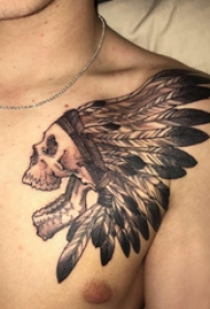 骷髅纹身 男生胸部黑色的印第安骷髅纹身图片