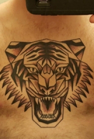 纹身胸部男 男生胸部黑色的老虎纹身图片