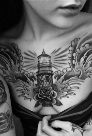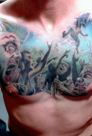 恐怖电影主题各种怪物彩色胸部纹身图案