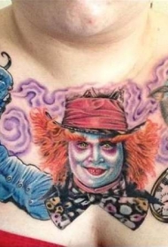 胸部彩绘爱丽丝梦游仙境各种角色纹身图案