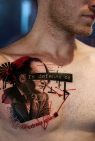 现代风格的彩色男人肖像纹身图案