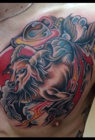old school胸部山羊与闪电和星星纹身图案