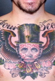 胸部墨西哥土著肖像翅膀纹身图案