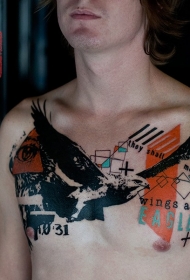 胸部飞鹰色和几何字母纹身图案