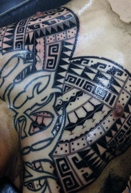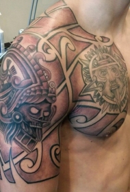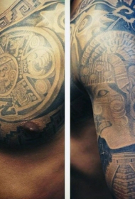 肩部和胸部玛雅符号纹身图案