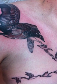 肩部和胸部成群的野鸭纹身图案