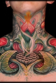 颈部出色的设计五彩神秘的花朵纹身图案