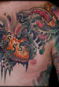 胸部奇怪的彩色幻想生物纹身图案