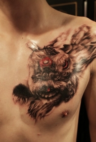 胸部看起来非常逼真的咆哮虎头纹身图案