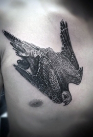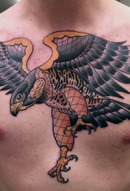 胸部飞行的老鹰逼真纹身图案