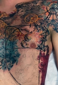 胸部old school大型彩色大雕纹身图案