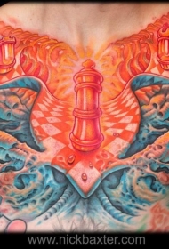 胸部独特的五彩棋发光纹身图案