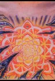 胸部和腹部old school彩色佛像和梵花纹身图案