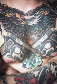 胸部old school手枪与鹰和花朵纹身图案