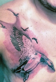 胸部彩色飞行的鸭子纹身图案