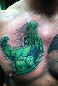 胸部漫画风格的彩色愤怒的绿巨人纹身图案