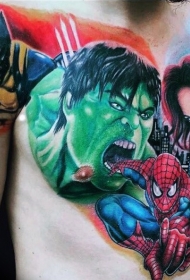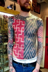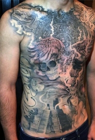 半甲彩色恐怖风格邪恶恶魔纹身图案