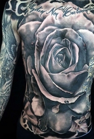 胸部和腹部壮观的大面积玫瑰花纹身图案