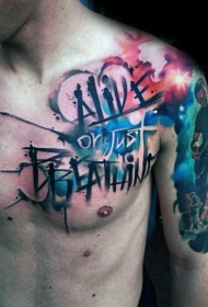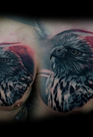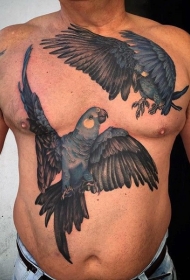 胸部梦幻般的彩色写实鹦鹉纹身图案
