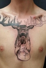 麋鹿纹身图案男 男生胸部心脏和麋鹿纹身图片