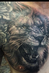 狮子王纹身 男生胸上素描的狮子纹身图片