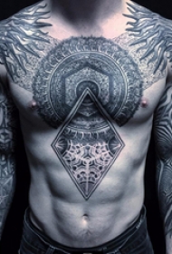 天使翅膀纹身图案 男生胸上天使翅膀和几何纹身图片